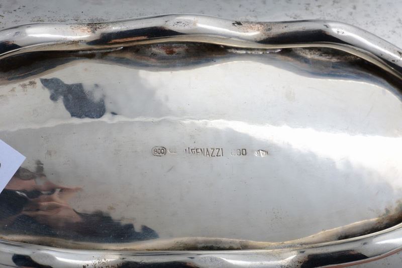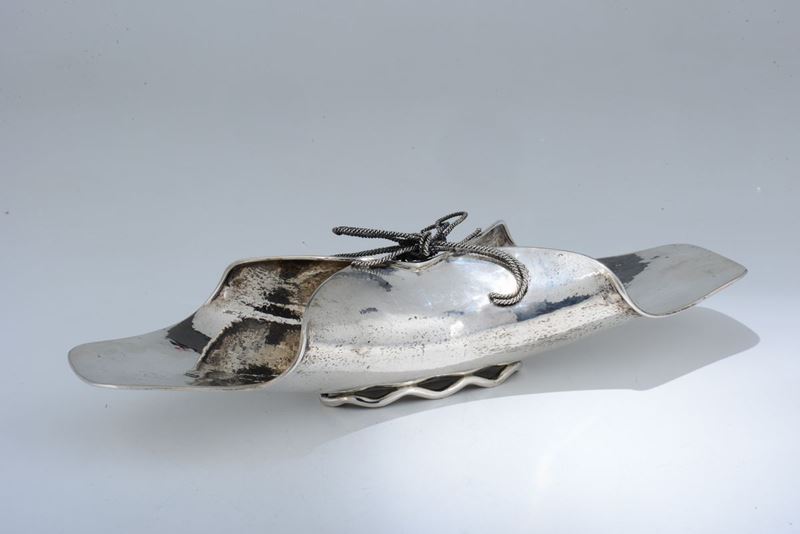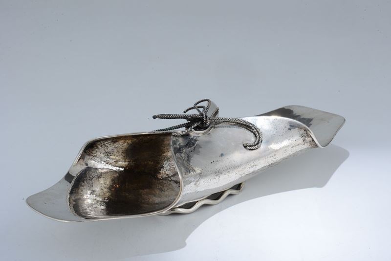 Un centrotavola in Aanto fuso sbalzato e cesellato. Milano punzoni del Fascio in uso dal 1934 al 1944 Argentiere Genazzi
