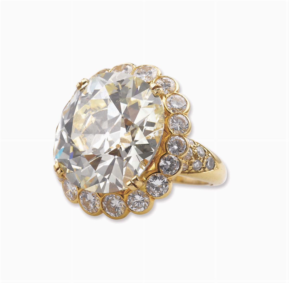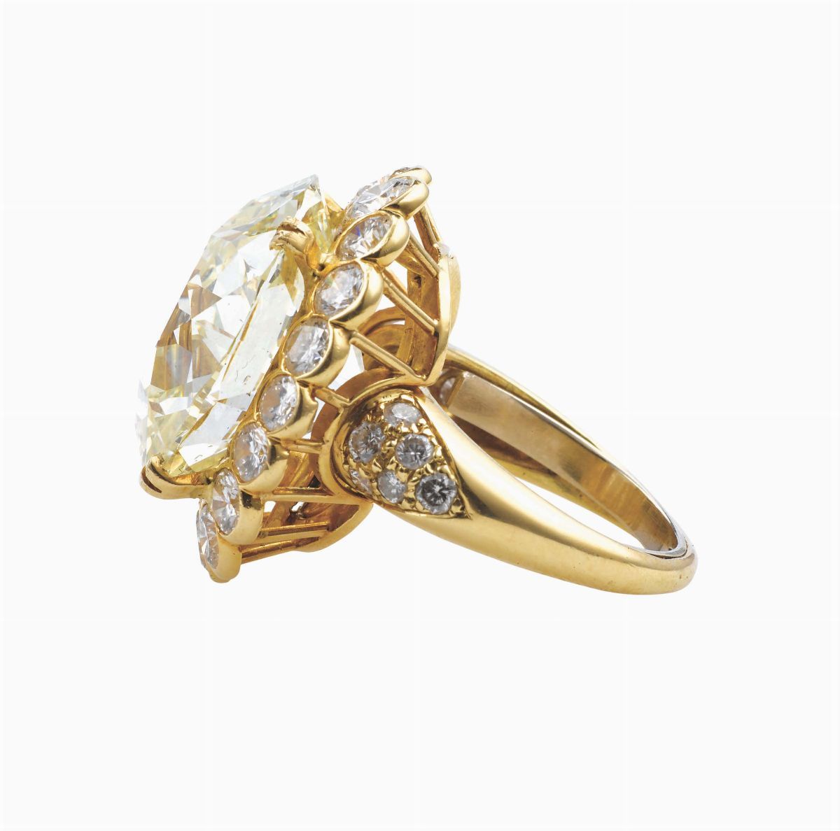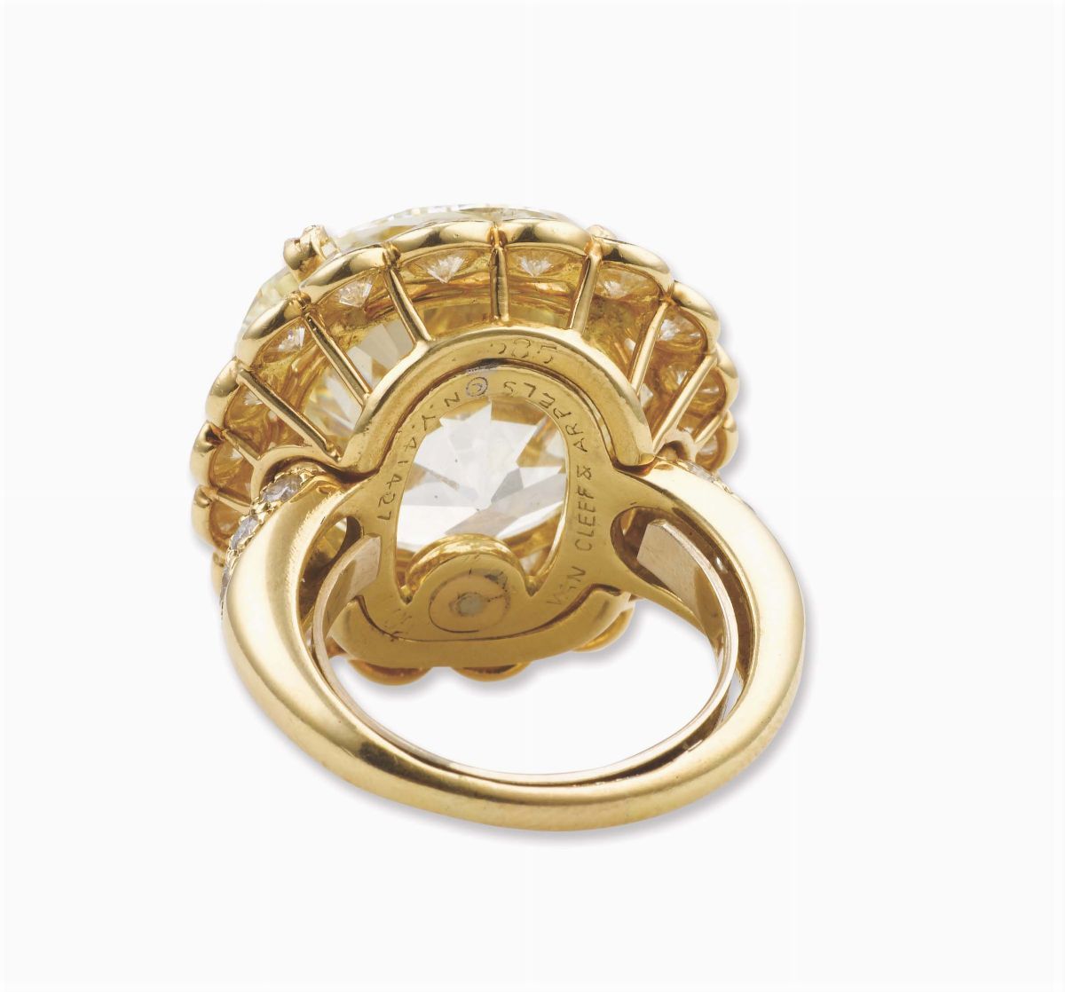 montatura in oro giallo 750/1000 con diamanti.All'interno reca l'incisione Van Cleef & Arpels N.Y. 41427. Accompagnato da Relazione di analisi R.A.G. Torino n°DR1107/16