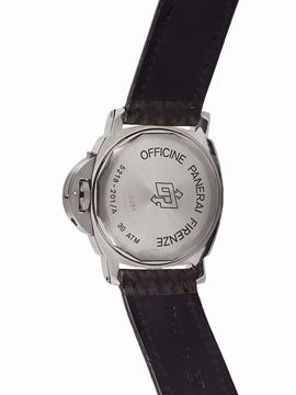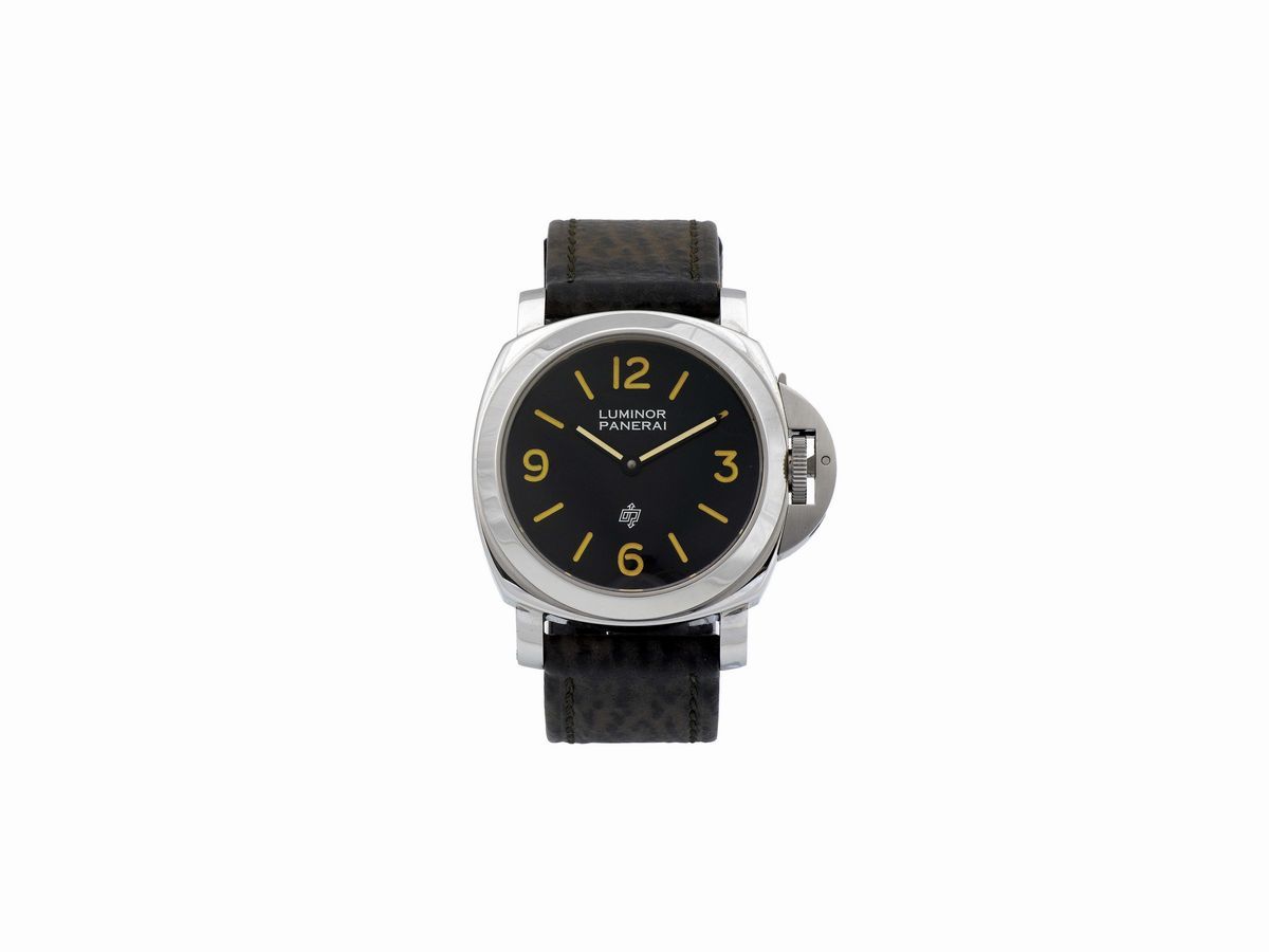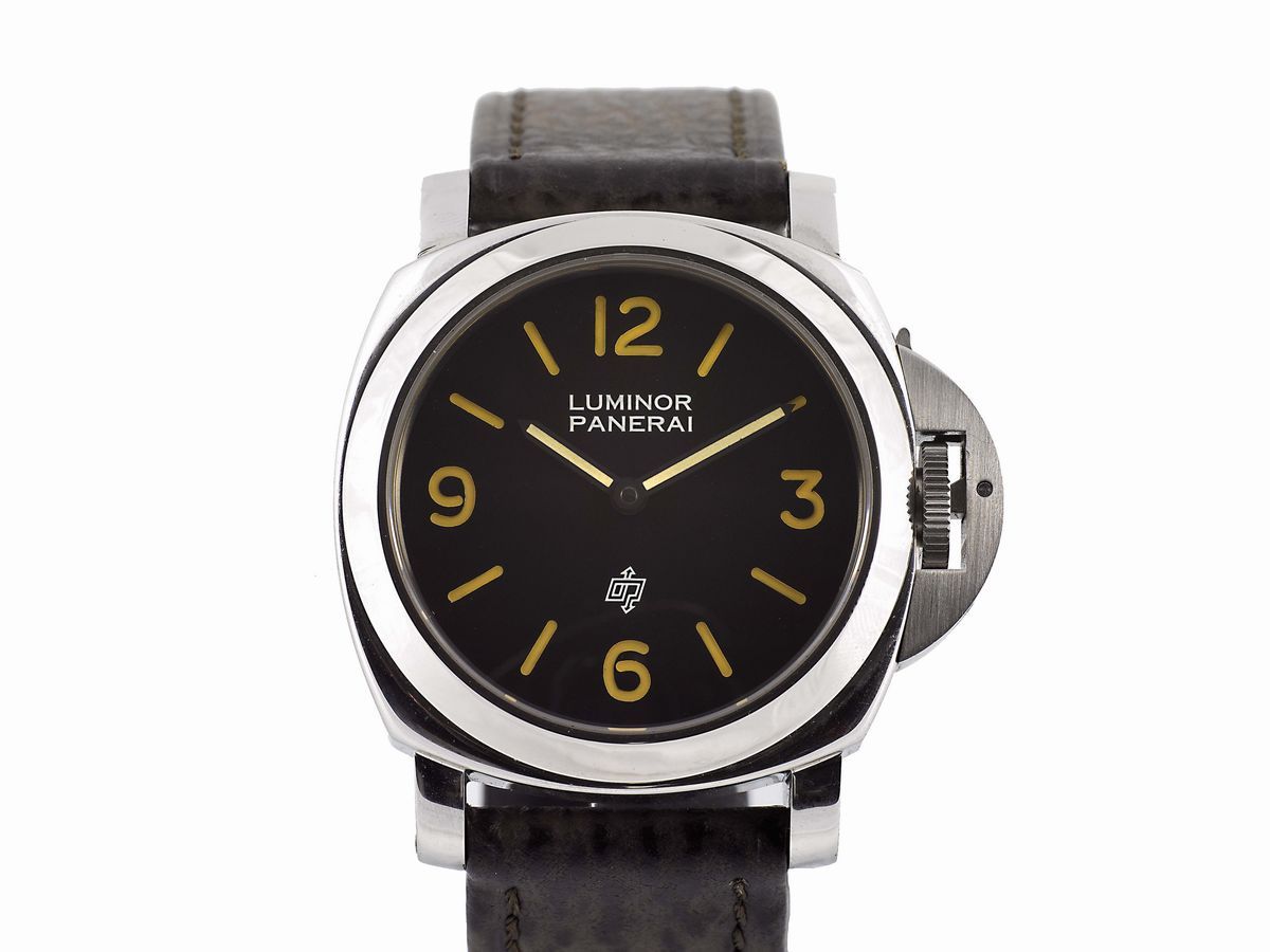 OFFICINE PANERAI, PANERAI LUMINOR LOGO REF. 5218-201/A PRE-VENDOME, No. 0079, Ref.5218-201/A, raro orologio da polso, in acciaio, impermeabile, con fibbia in acciaio Panerai. Accompagnato da scatola originale in mogano, cinturino aggiuntivo con fibbia Panerai, cacciavite e Certificato. Realizzato nel 1993 in una serie limitata di 677 pezzi