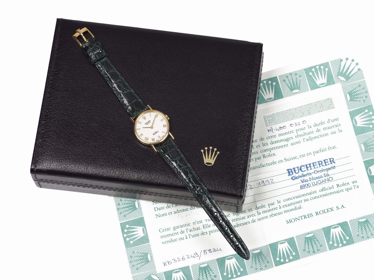 ROLEX, Genève, Cellini, orologio da polso, da donna, in oro giallo 18K con fibbia originale in oro. Accompagnato da scatola e Garanzia. Realizzato circa nel 1990