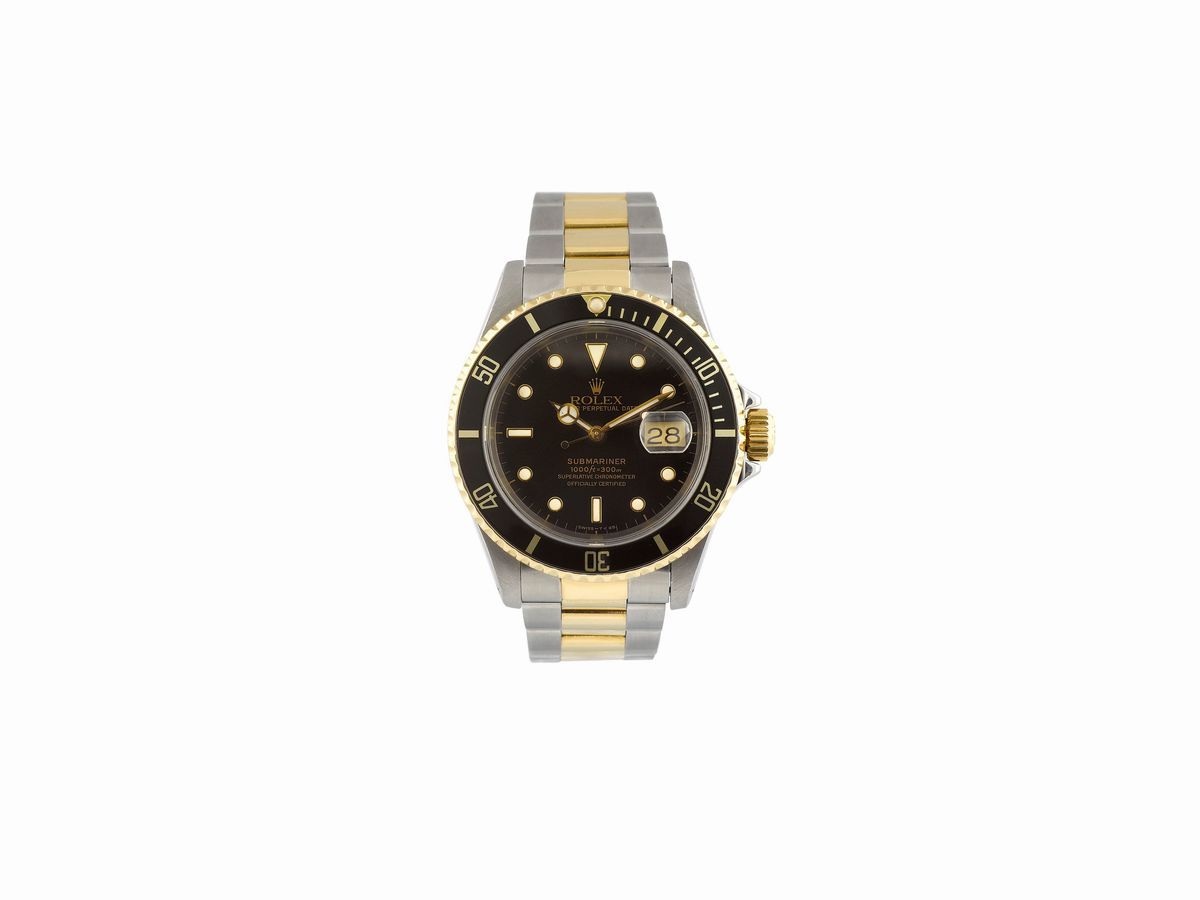 ROLEX, Oyster Perpetual Date, Submariner, 1000 ft /330 m, Superlative Chronometer Officially Certified, cassa No. N206567, Ref. 16613, orologio da polso, in acciaio e oro, automatico, impermeabile con bracciale Rolex Oyster e chiusura deployante. Realizzato nel 1992