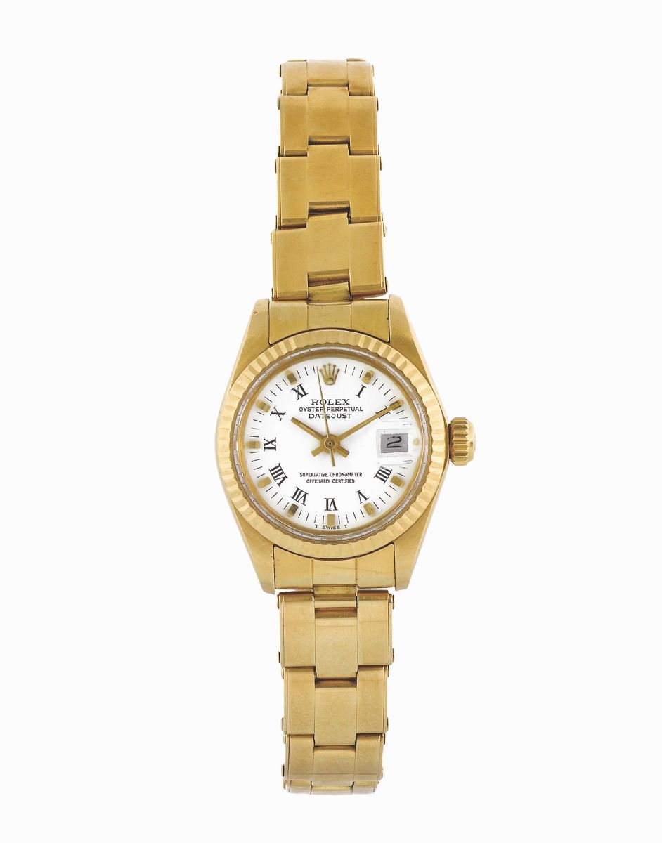 ROLEX, Oyster Perpetual, Datejust, Superlative Chronometer, Officially Certified, case No. 5933064, Ref. 6917, orologio da polso, in oro giallo 18K, automatico, impermeabile con datario, bracciale Rolex Oyster in oro 18K con chiusura deployante. Accompagnato da scatola originale. Realizzato circa nel 1978