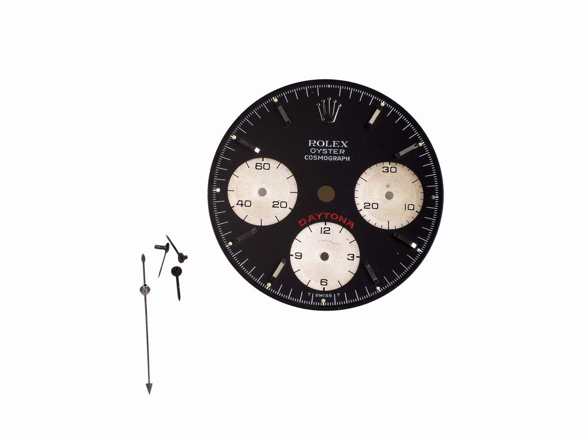 ROLEX QUADRANTE CON SFERE Oyster Cosmograph Daytona, Ref. 6263, in acciaio, bi-colore, argento e nero con indici in acciaio a bastone, contatori per i secondi, ore e minuti, divisione minuti/secondi esterna, SCRITTA DAYTONA IN ROSSO, parte posteriore firmata Singer. OTTIME CONDIZIONI