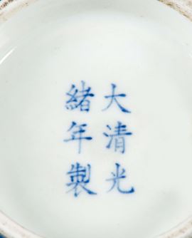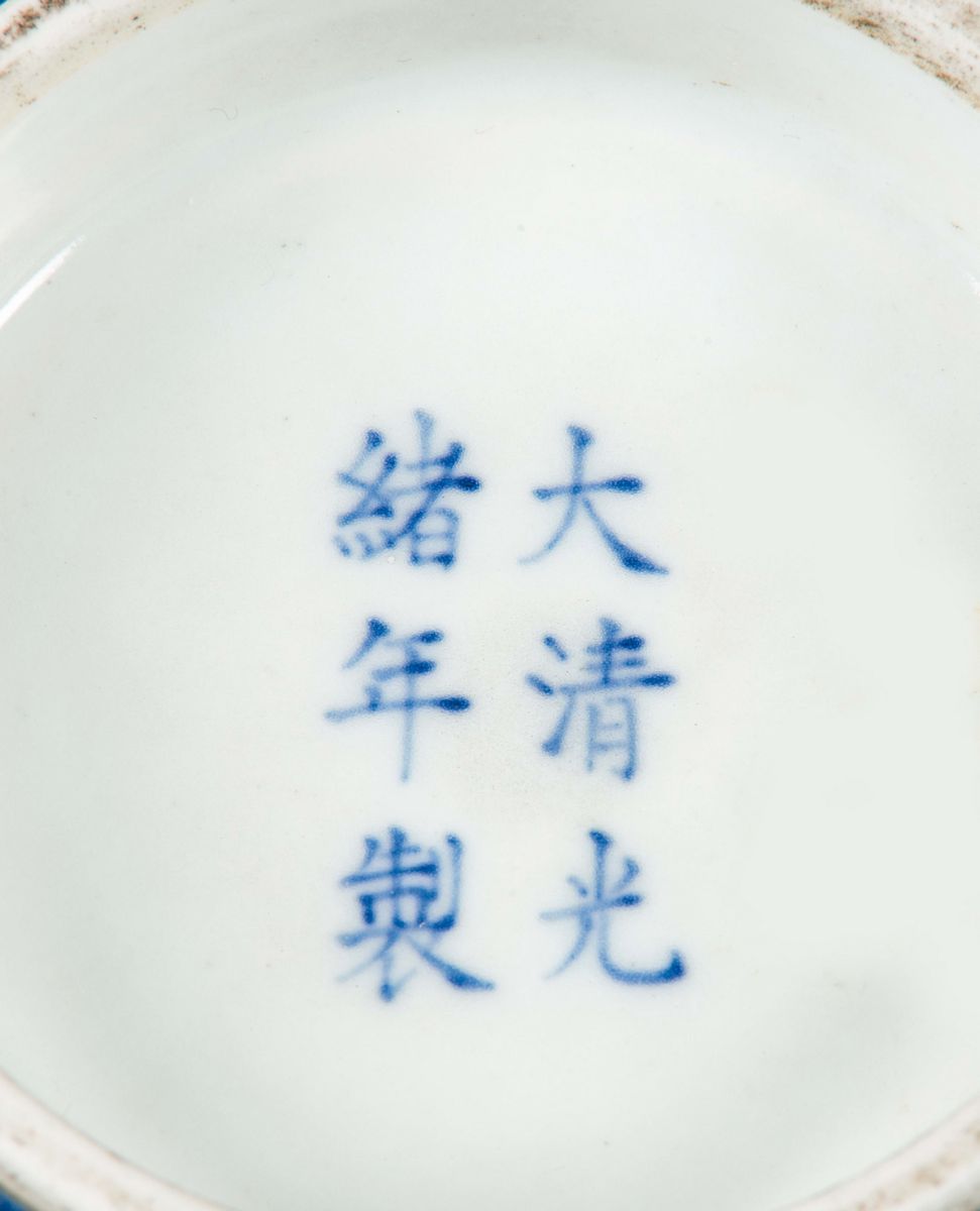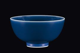 Ciotola in porcellana monocroma blu, Cina, Dinastia Qing, marca e del periodo Guangxu (1875-1908)