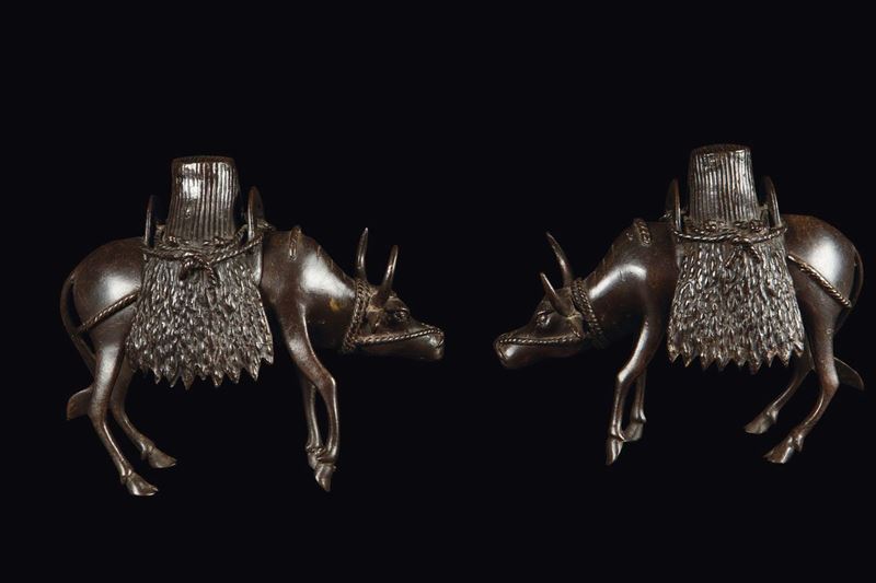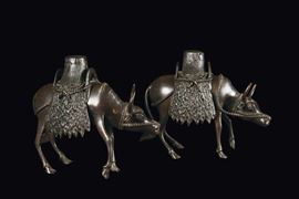 Coppia di incensieri raffiguranti bufali, Cina, Dinastia Qing, XVIII secolo