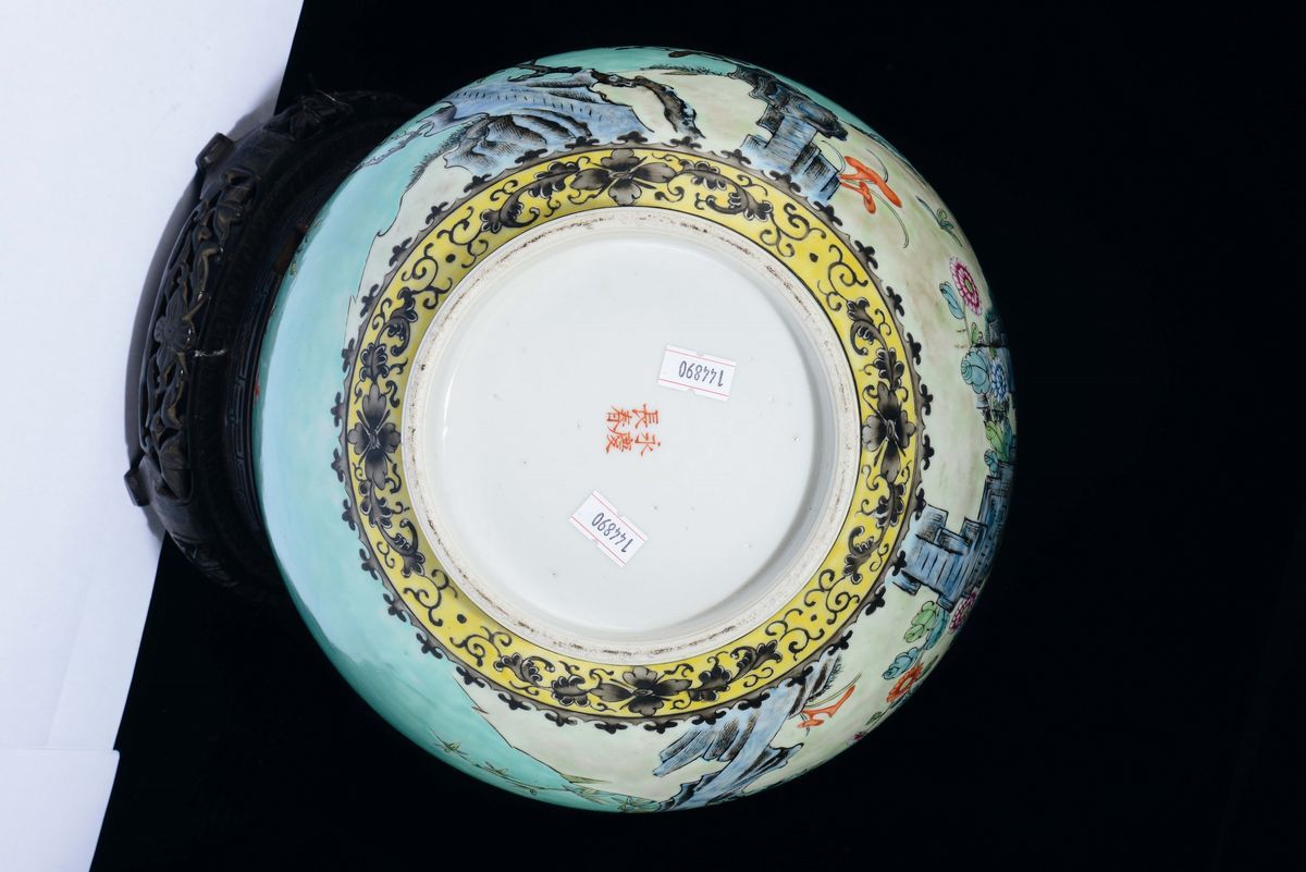 Coppia di vasi a bottiglia in porcellana a smalti policromi Da ya zhai con decoro di fiori ed iscrizioni, Cina, Dinastia [..]