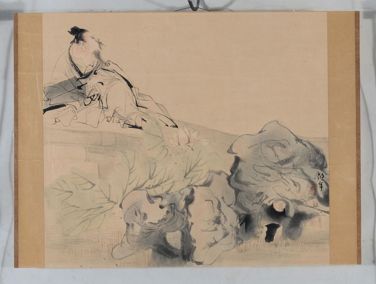 Dipinto su carta raffigurante saggio con firma dell'autore Bo Nian, Cina, Dinastia Qing, XIX secolo