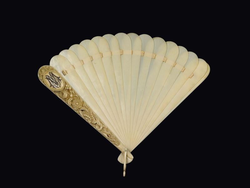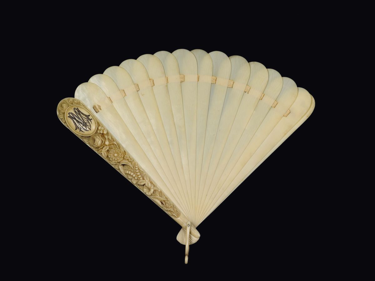 Due ventagli in avorio traforato con decoro naturalistico a rilievo, Cina, Dinastia Qing, fine XIX secolo