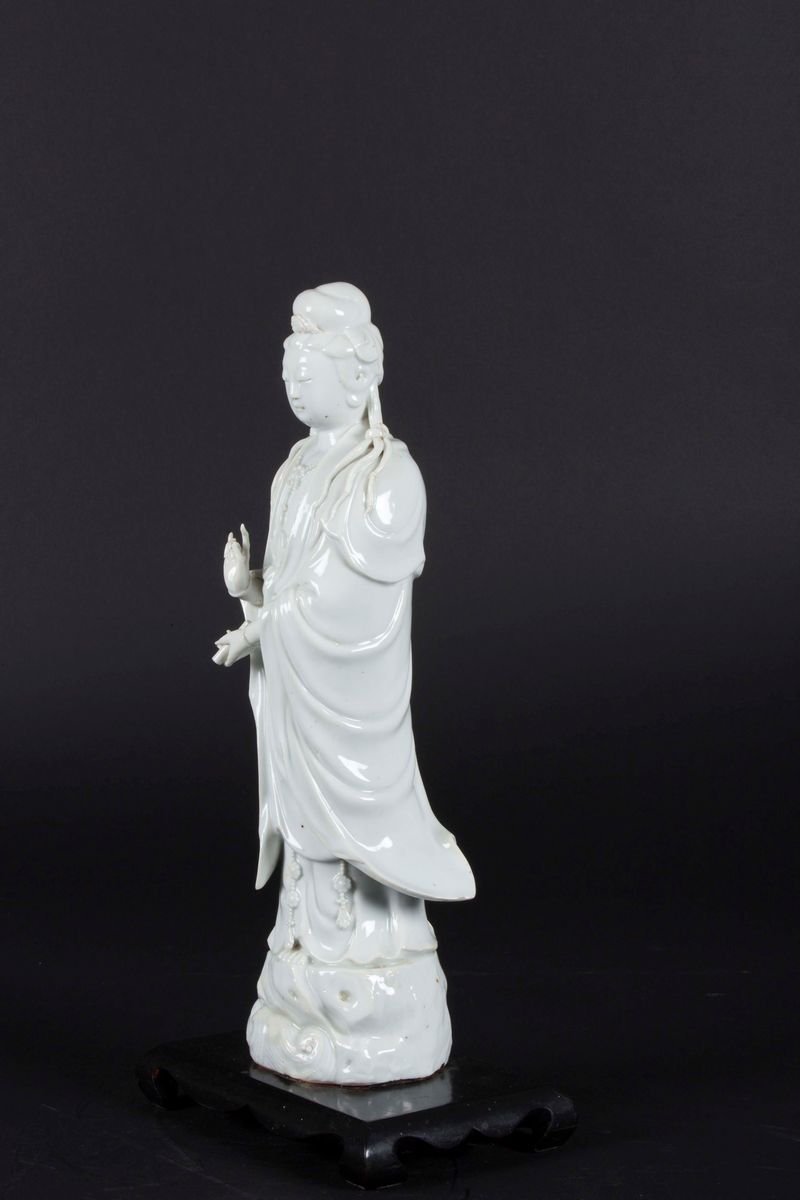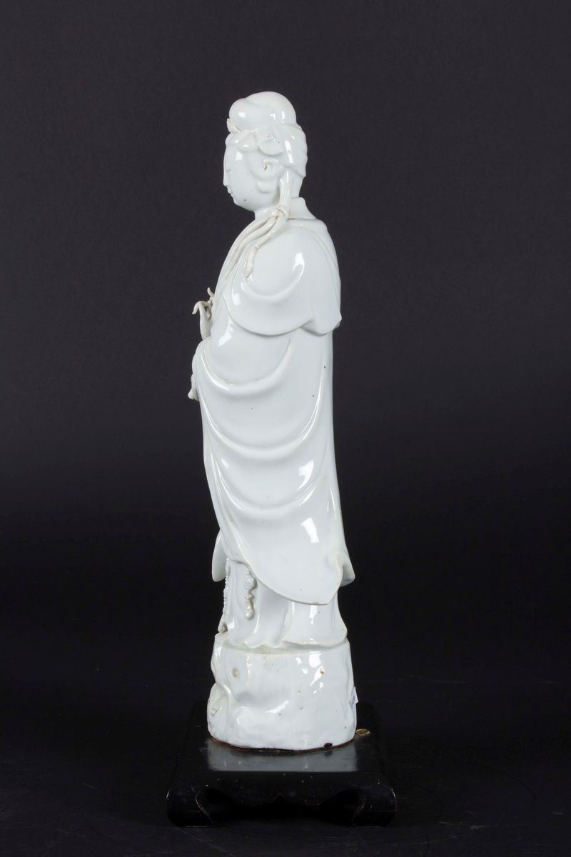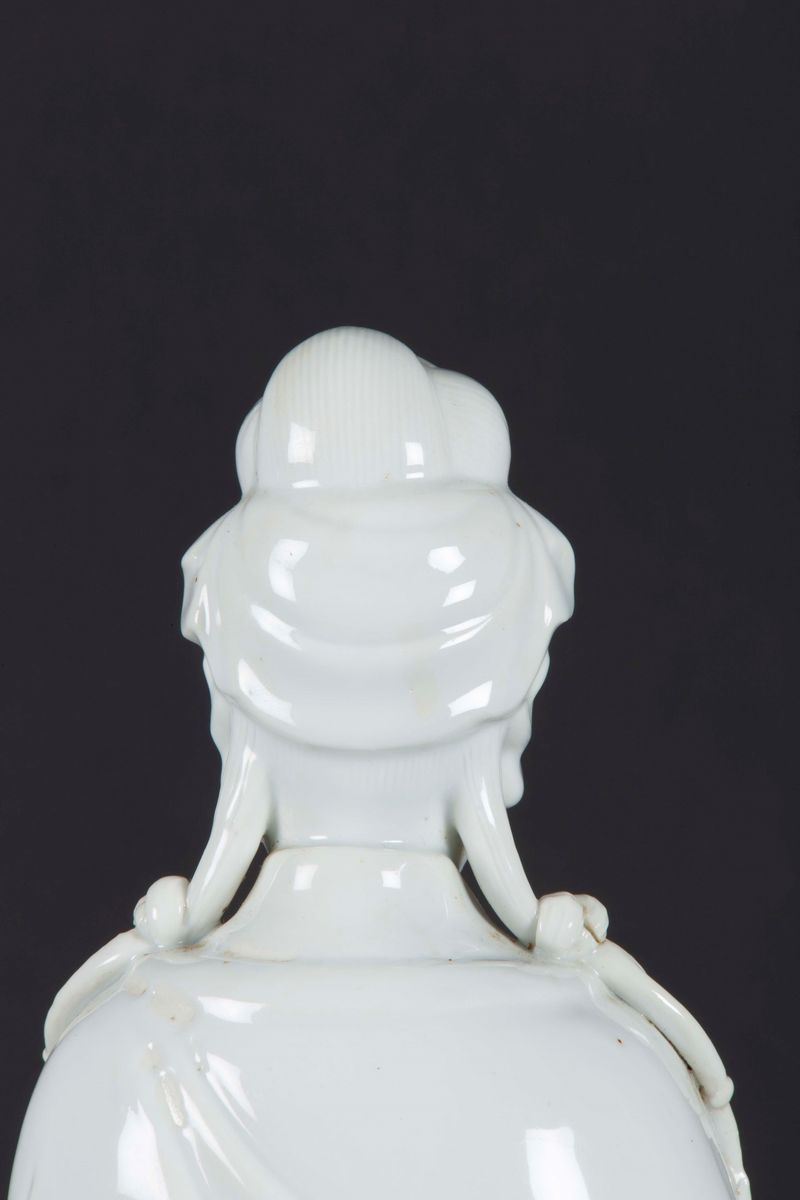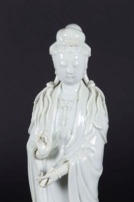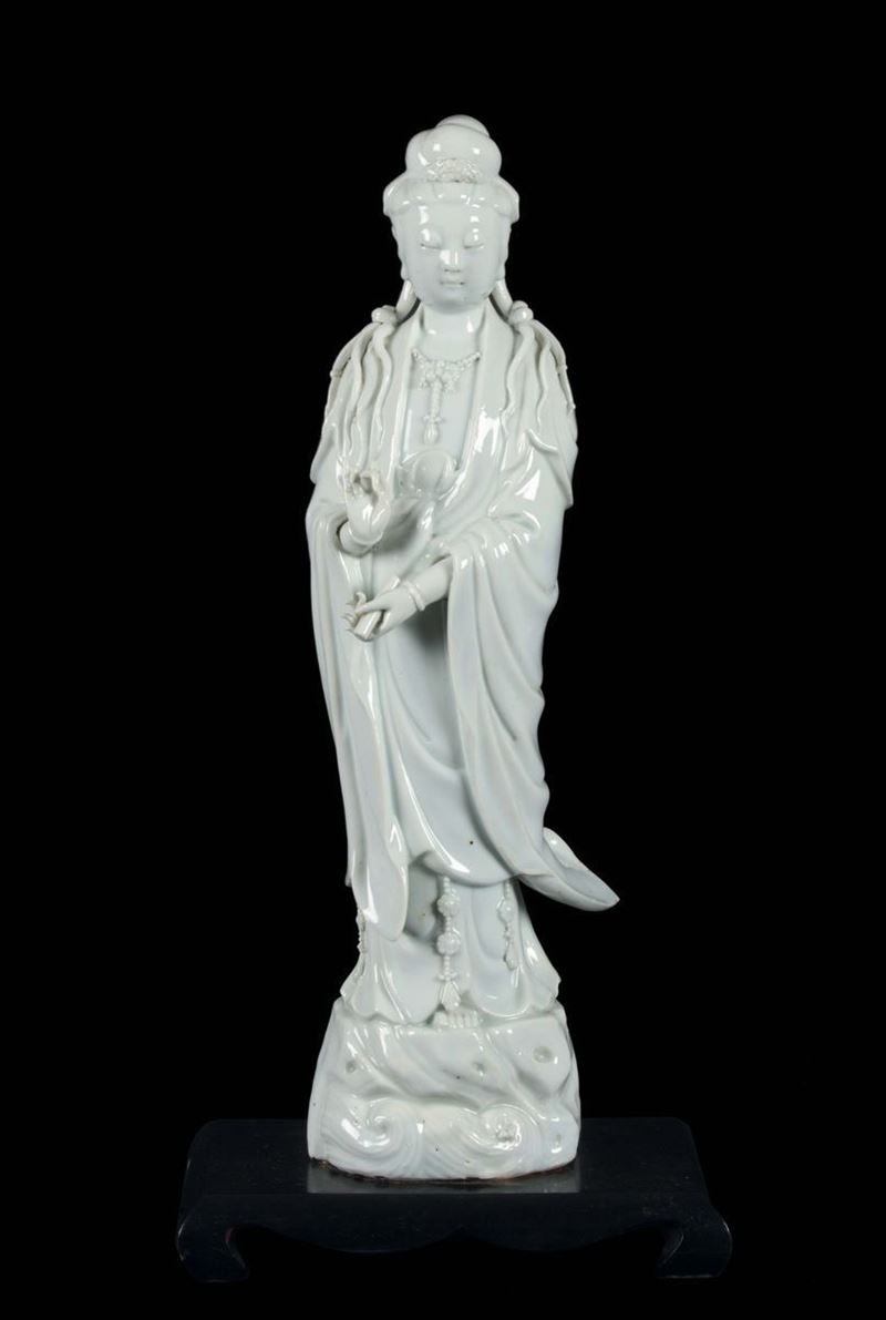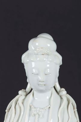 Figura di Guanyin eretta in porcellana Blanc de Chine, Cina, Dinastia Qing, XIX secolo