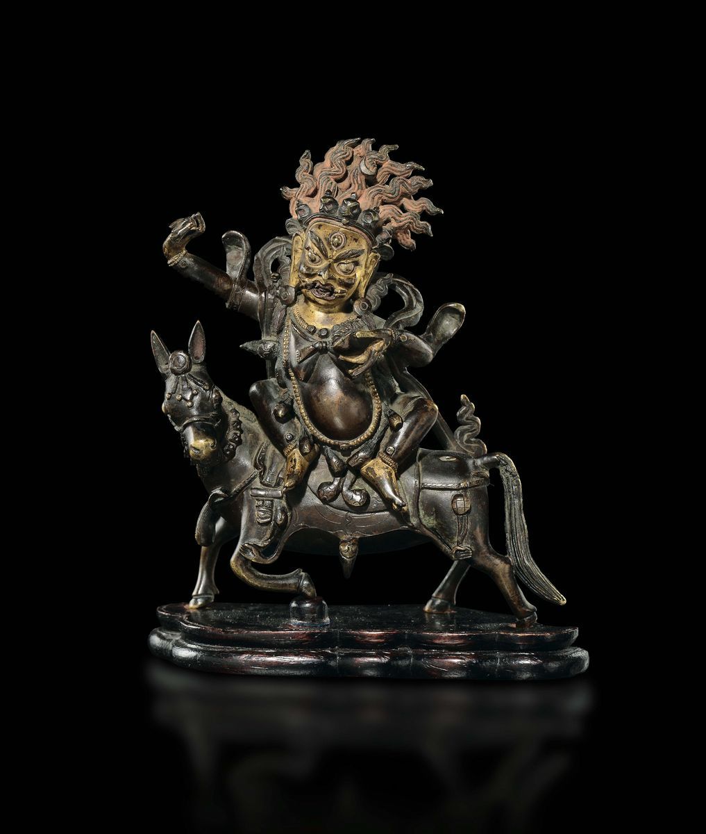 Figura di Sridevi a cavallo in bronzo con tracce di doratura, Tibet, XVIII secolo