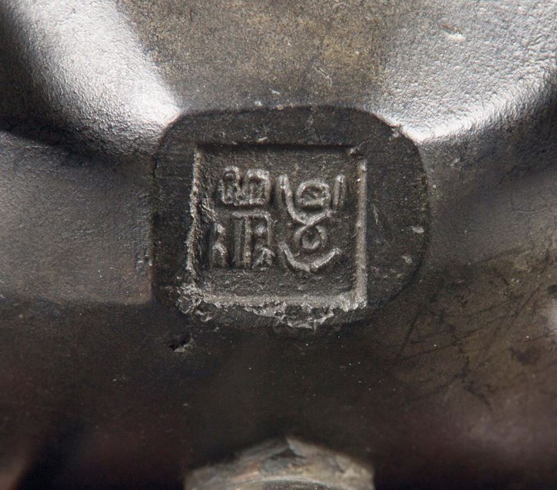 Incensiere tripode in bronzo a decoro geometrico d’ispirazione arcaica con coperchio in legno, Cina, Dinastia Ming, XVII [..]