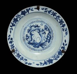 Piatto in porcellana bianca e blu con raffigurazione di coniglio, Cina, Dinastia Ming, epoca Wanli (1573-1619)