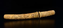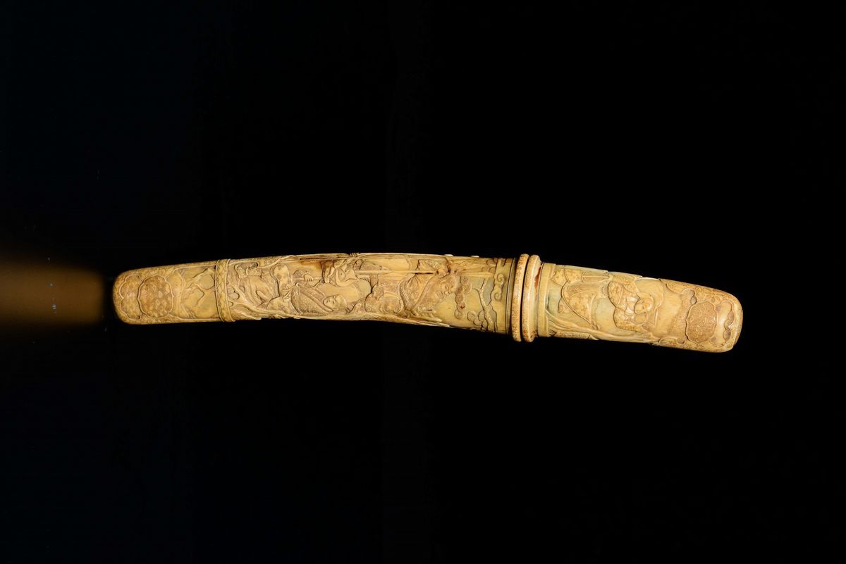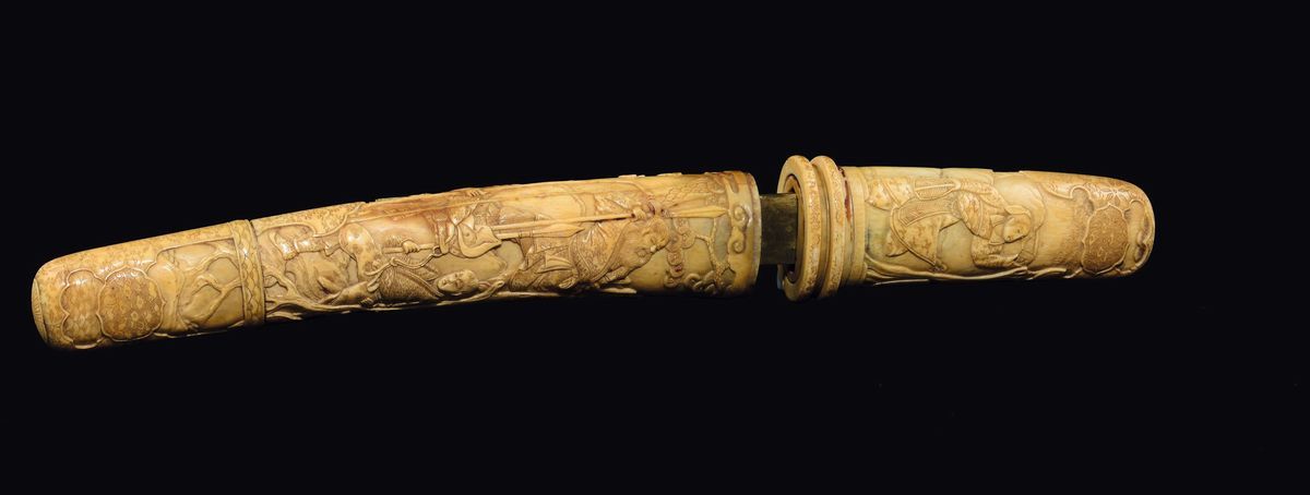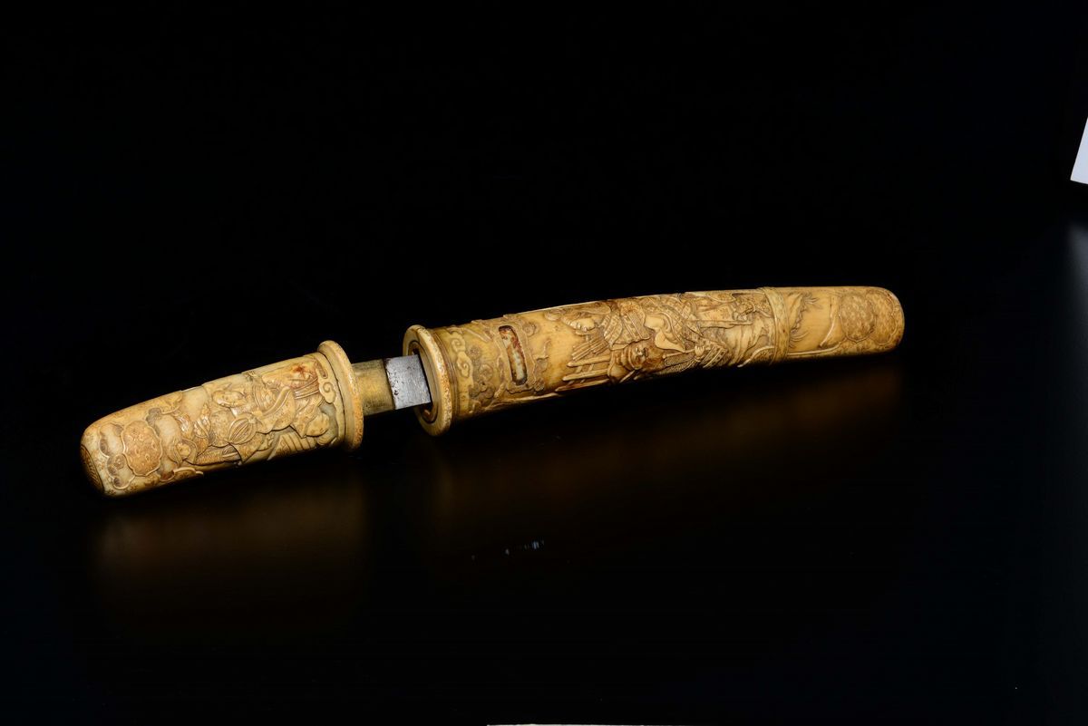 Pugnale scolpito in avorio raffigurante scene di battaglia, Giappone, epoca Meiji, XIX secolo