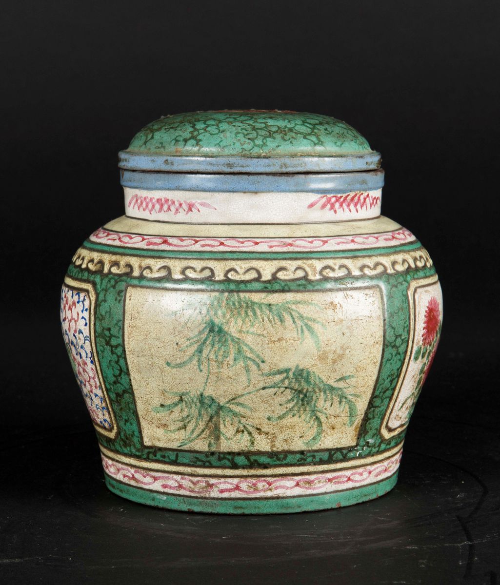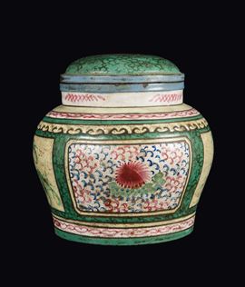 Rara potiche con coperchio in terracotta Yixing smaltata con decoro floreale entro riserve, Cina, Dinastia Qing, XVIII secolo