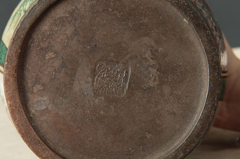 Rara potiche con coperchio in terracotta Yixing smaltata con decoro floreale entro riserve, Cina, Dinastia Qing, XVIII se [..]