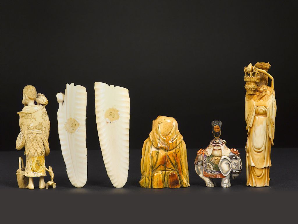 Sei pezzi scolpiti in avorio raffiguranti personaggi, Cina, Dinastia Qing, XIX secolo