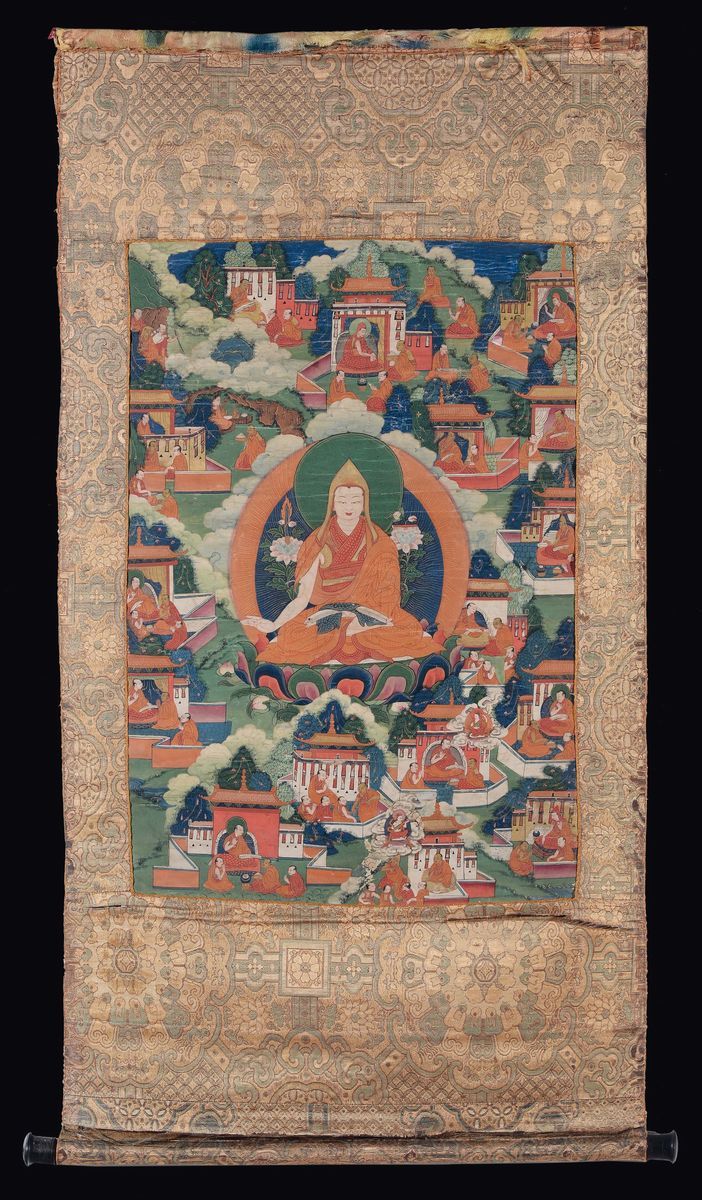 Tanka su carta con immagine di Lama centrale, Tibet, XVIII secolo