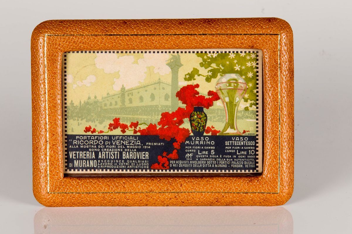 Questo vaso è venduto con la cartolina pubblicitaria della manifestazione Fiera mostra dei fiori tenuta a Palazzo Ducale nel 1914 dove esponevano gli Artisti Barovier, spedita a un familiare Barovier in guerra in Albania