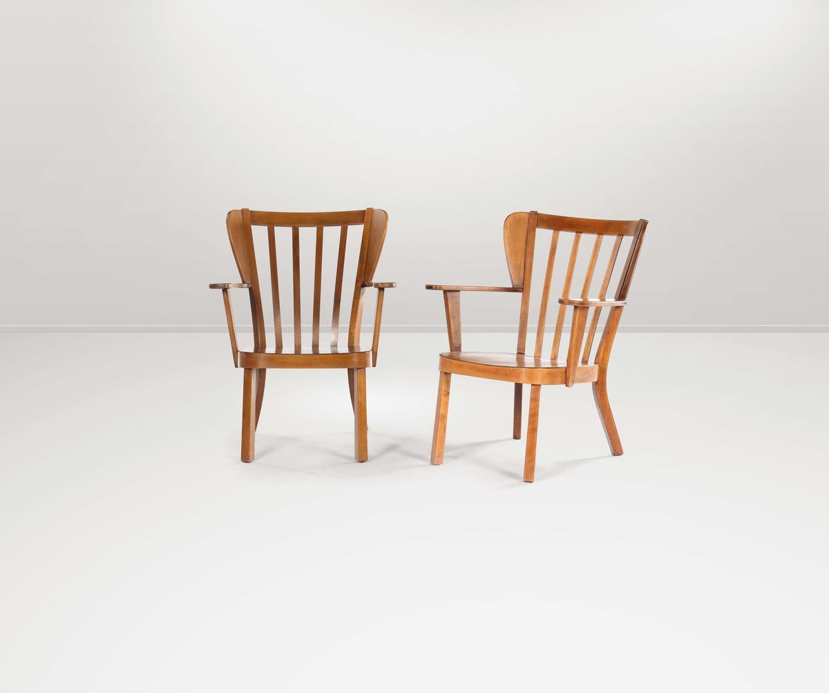 Coppia di sedie Canada mo. 2252 in legno di faggio.Prod. Fritz Hansen, Danimarca, 1940 ca.cm. 64x80x50
