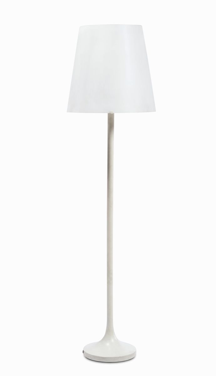 Lampada da terra Lumen con struttura in metallo verniciato e diffusore in vetro soffiato opalino satinato. Prod. Fontana Arte, Italia, 1954cm. 40x175