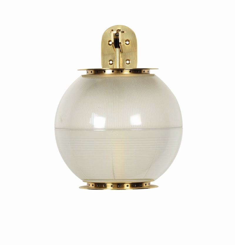 Coppia di lampade a muro LP7 in vetro pressato prismatico e sabbiato e con struttura in ottone.Prod. Azucena, Italia, 1955cm. 26x36x36