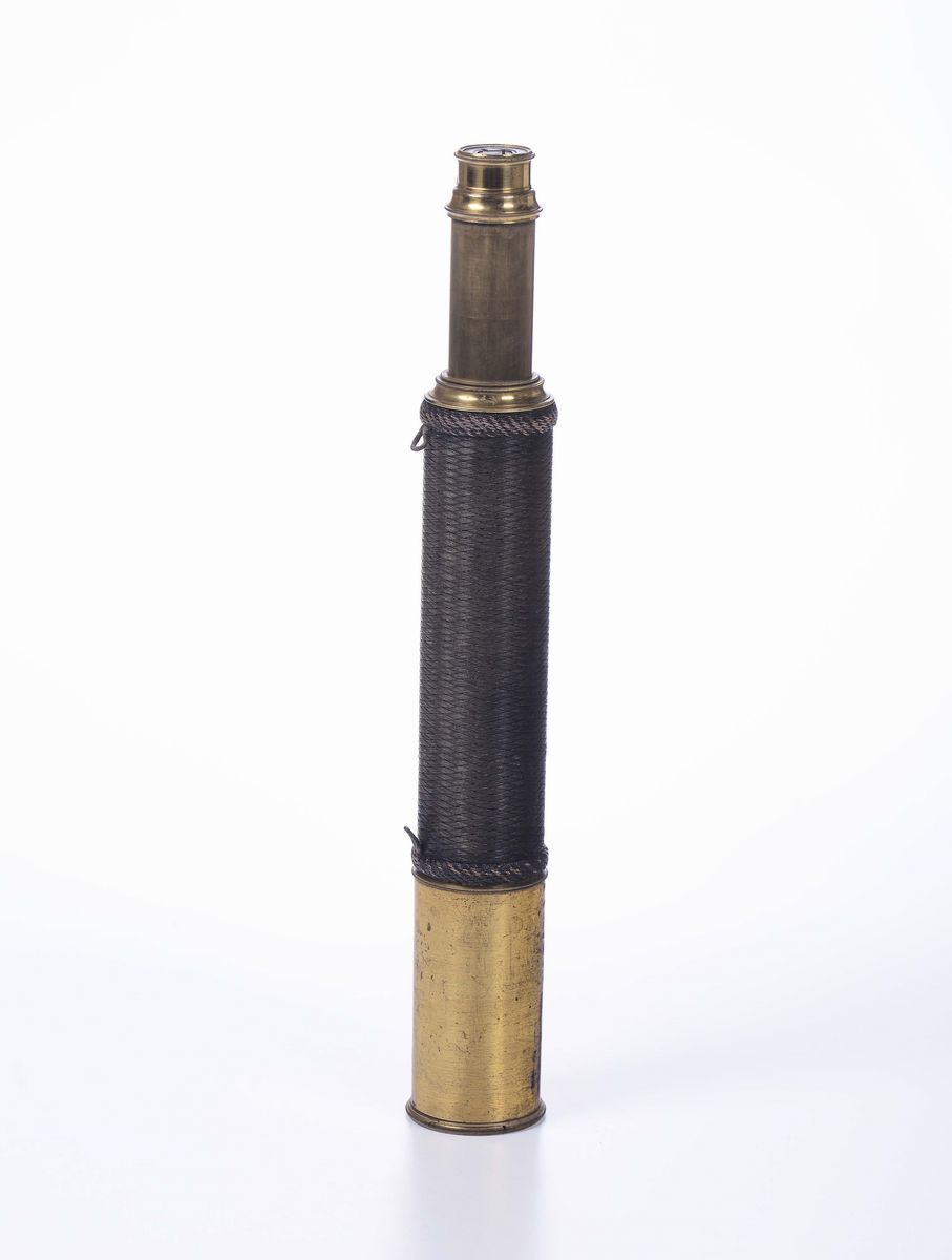 Cannocchiale ad un allungo in pelle e ottone, XIX secolo