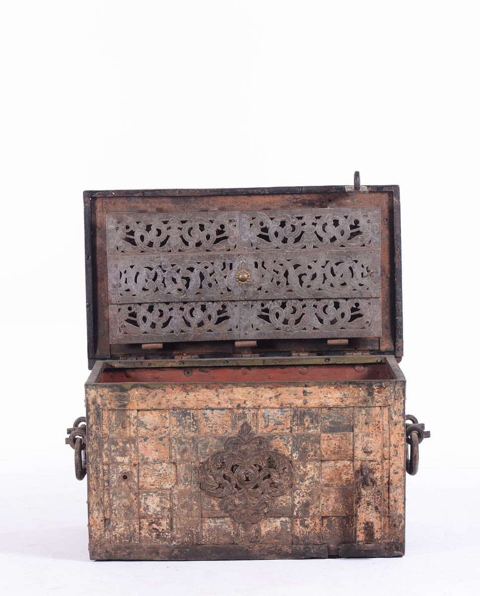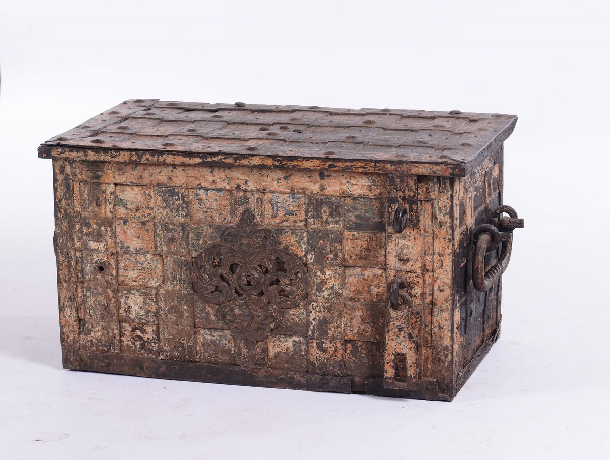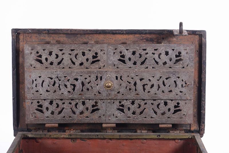Forziere in ferro a forma di cassa di bordo, Italia settentrionale seconda metà XVII secolo