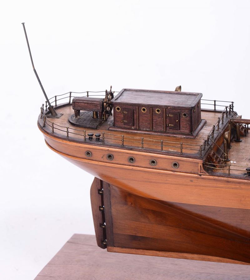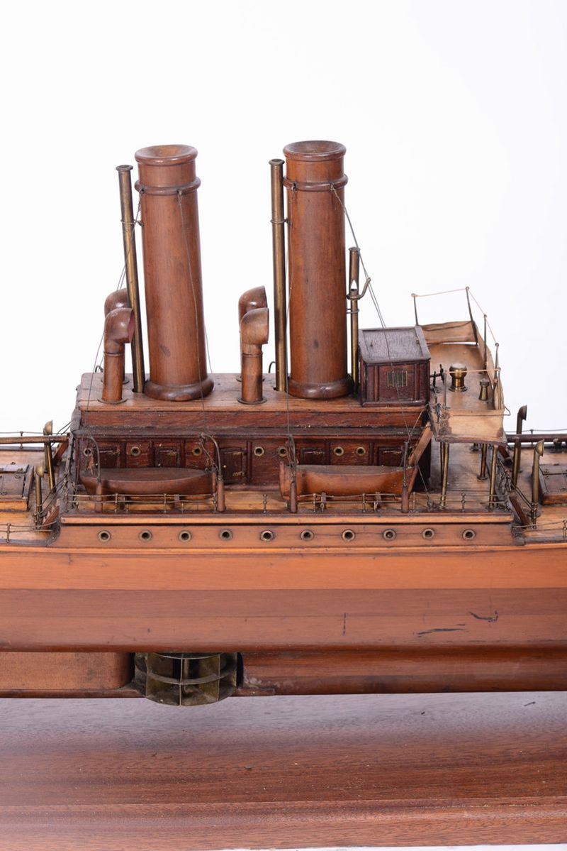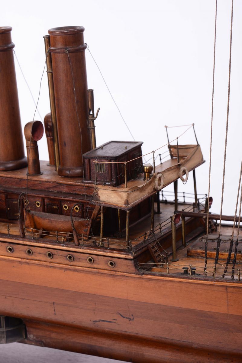 Interessante modello di piroscafo ottocentesco a ruote orizzontali, seconda metà del XIX secolo