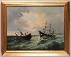 coppia di dipinti ad olio su tela, cm 72x92, firmati in basso a destra