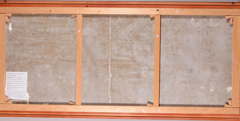 olio su tela, cm 93x210, firmato in alto a destra