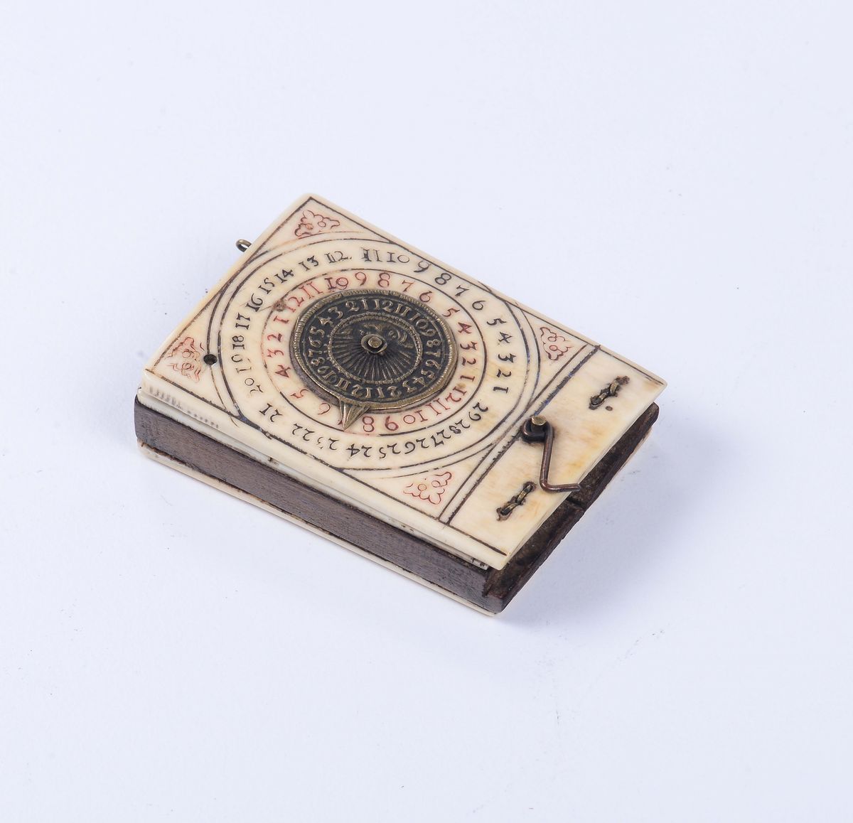 Orologio solare da viaggio tipo dittico di direzione, in avorio e legno, Germania, fine XVII secolo