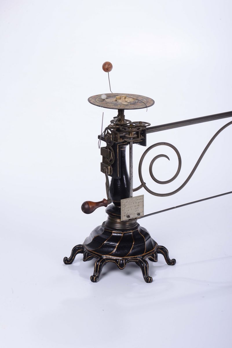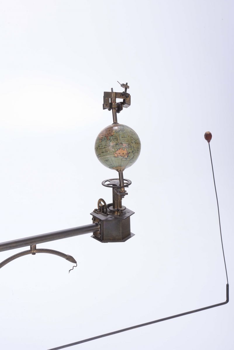 Planetario con Terra, Luna e Mercurio, Marte, Venere,base in bronzo fuso, un complicato sistema di ingranaggi provoca la [..]