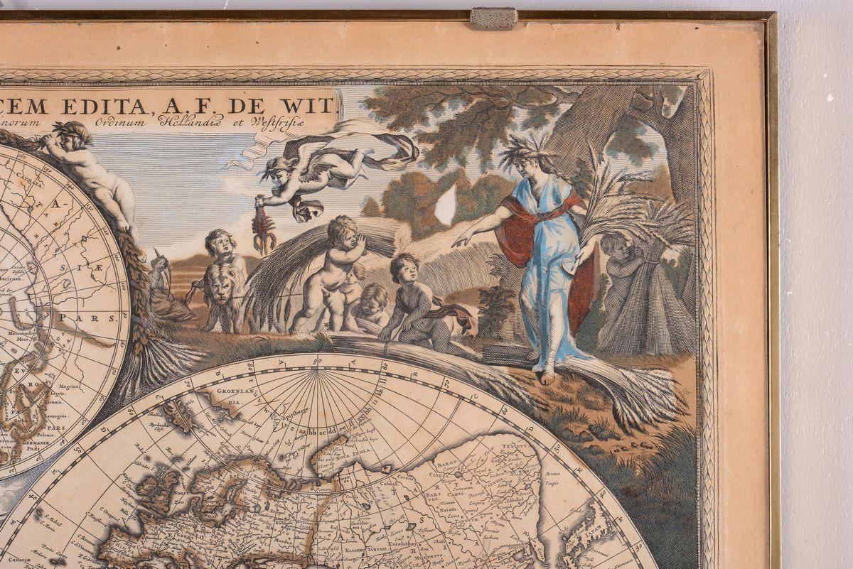 Planisfero terreste, edito da A.F. De Wit, XVIII secolo