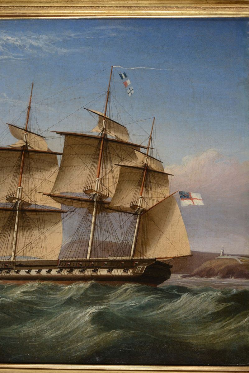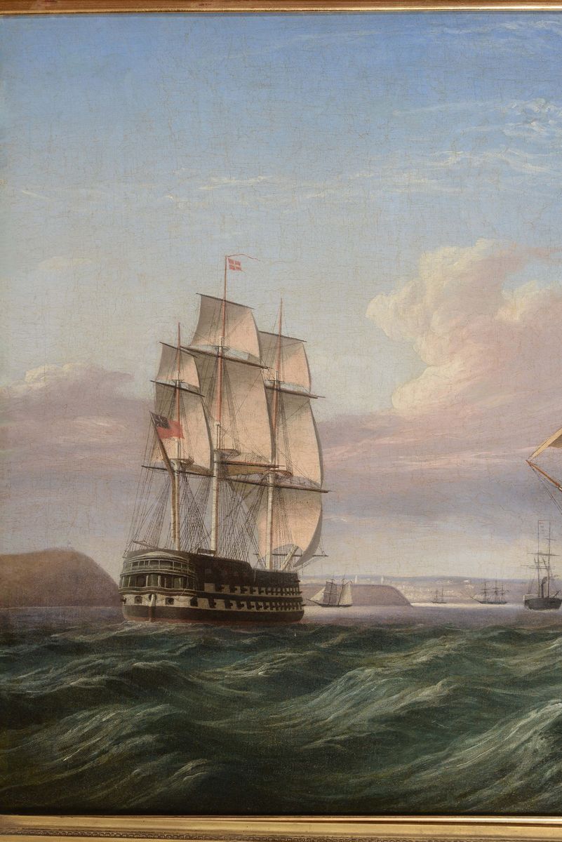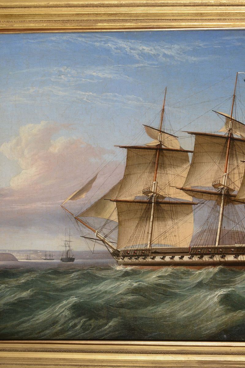 Scuola inglese del XIX secolo Scena costiera con velieri