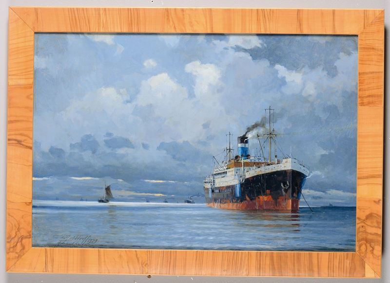 Victor Quistorff (1883-1953) Ritratto di cargo in navigazione
