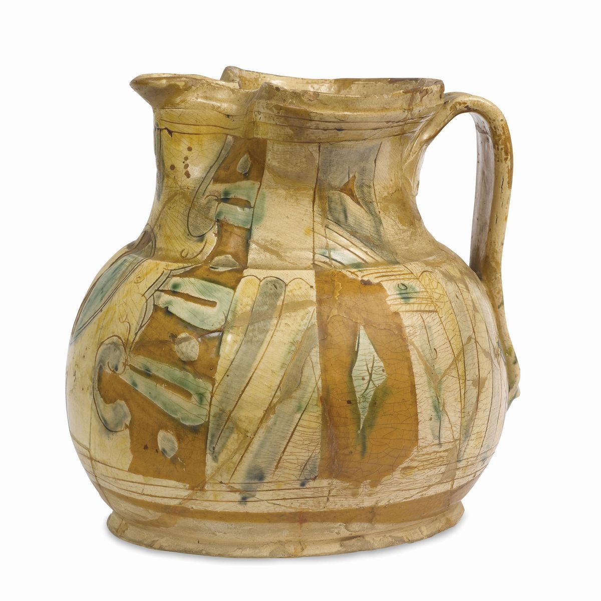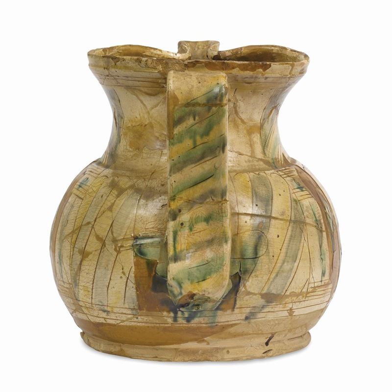 Ceramica ingobbiata,“graffita”, dipinta e invetriata Altezza cm 20 Rotture e piccole integrazioni Provenienza: collezione privata
