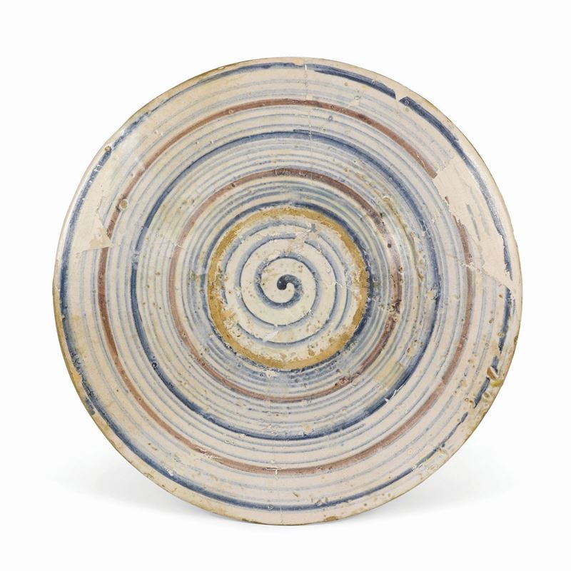 Maiolica Diametro cm 24 Frattura trasversale e lacune integrate Provenienza: collezione privata