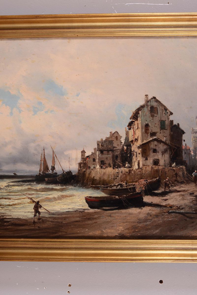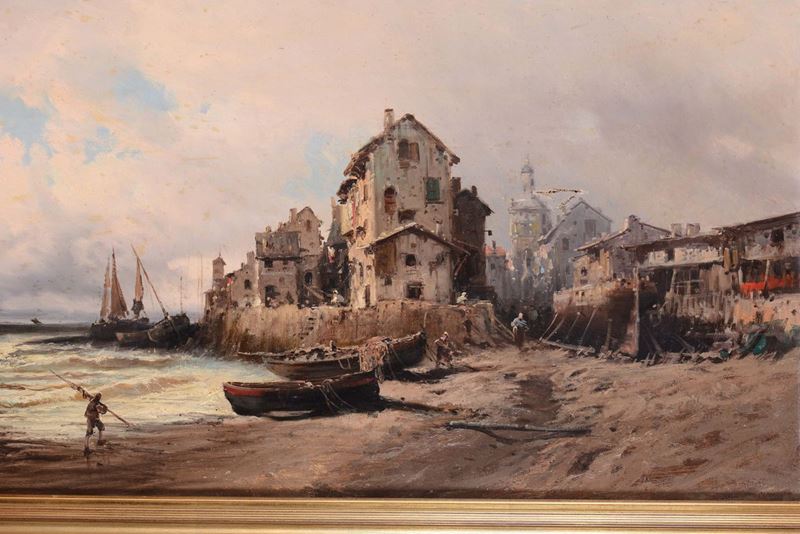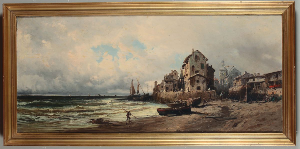 Alfred Godchaux (1835-1895) Paesaggio costiero con pescatore Paesaggio costiero con architetture