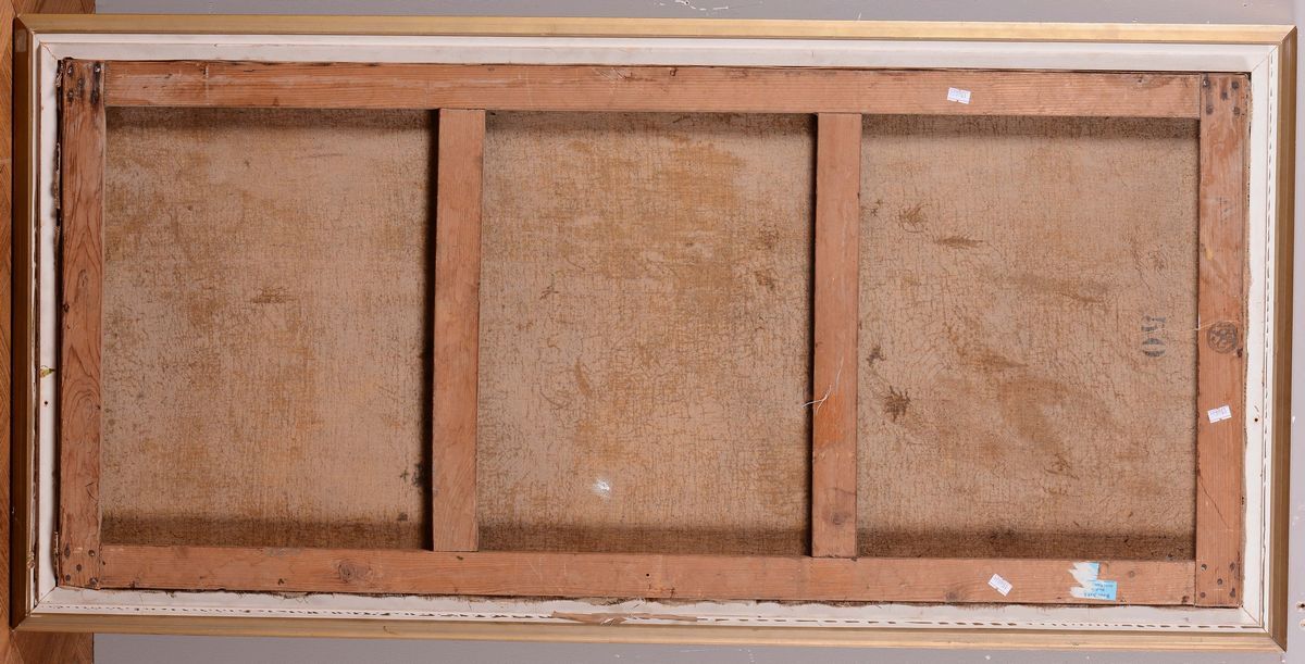coppia di dipinti ad olio su tela, cm 51x116, firmati in basso a sinistra