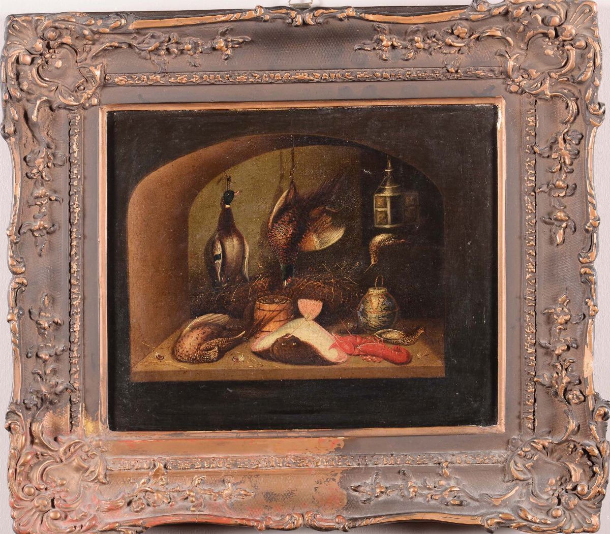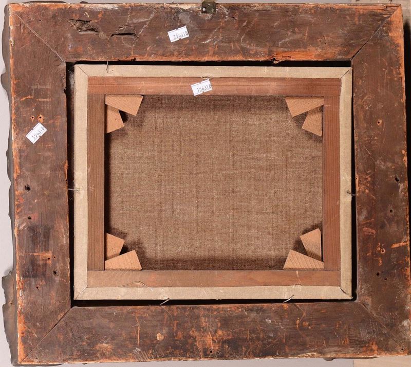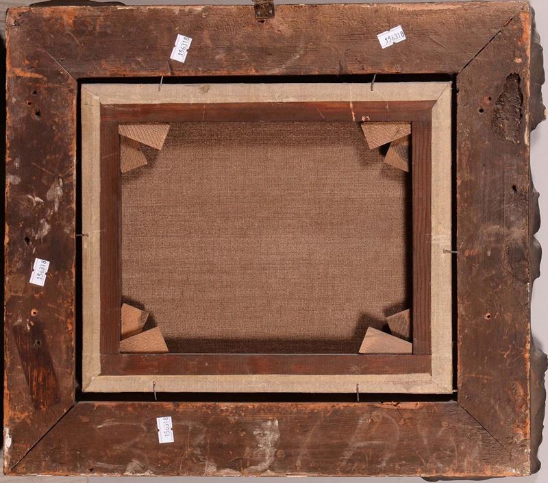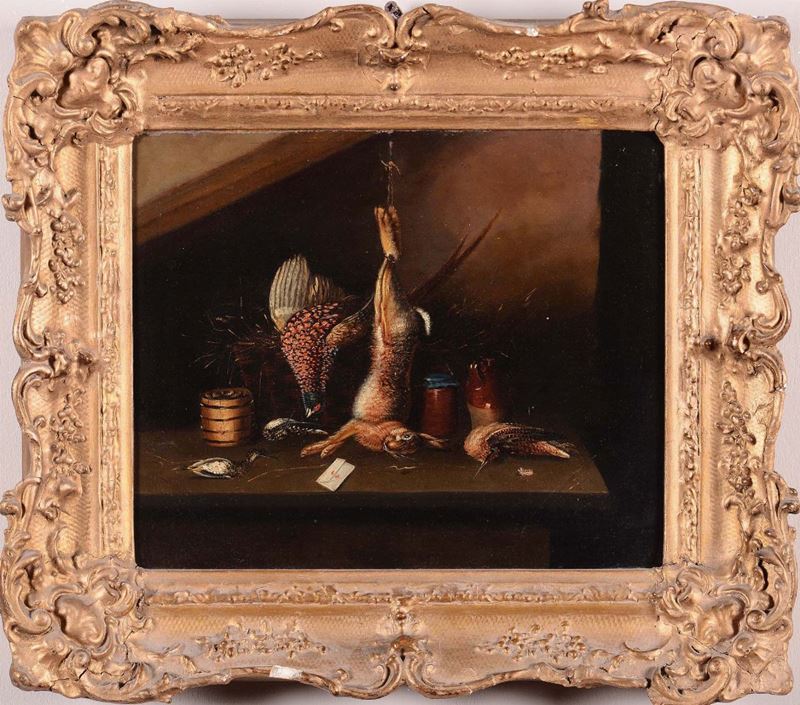 Quattro dipinti raffiguranti scene di cacciagione, olio su tela, cm 25x20