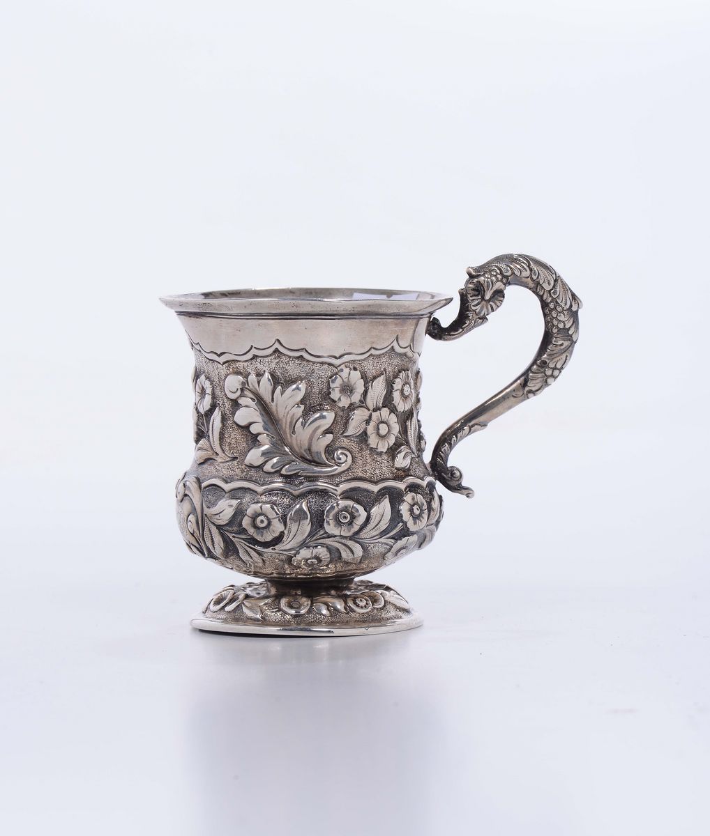Boccale in argento, sbalzato, Inghilterra XX secolo