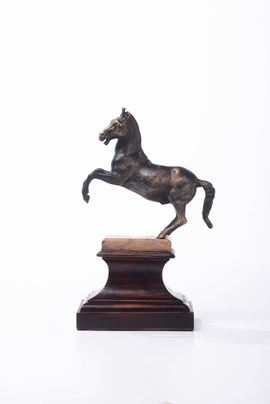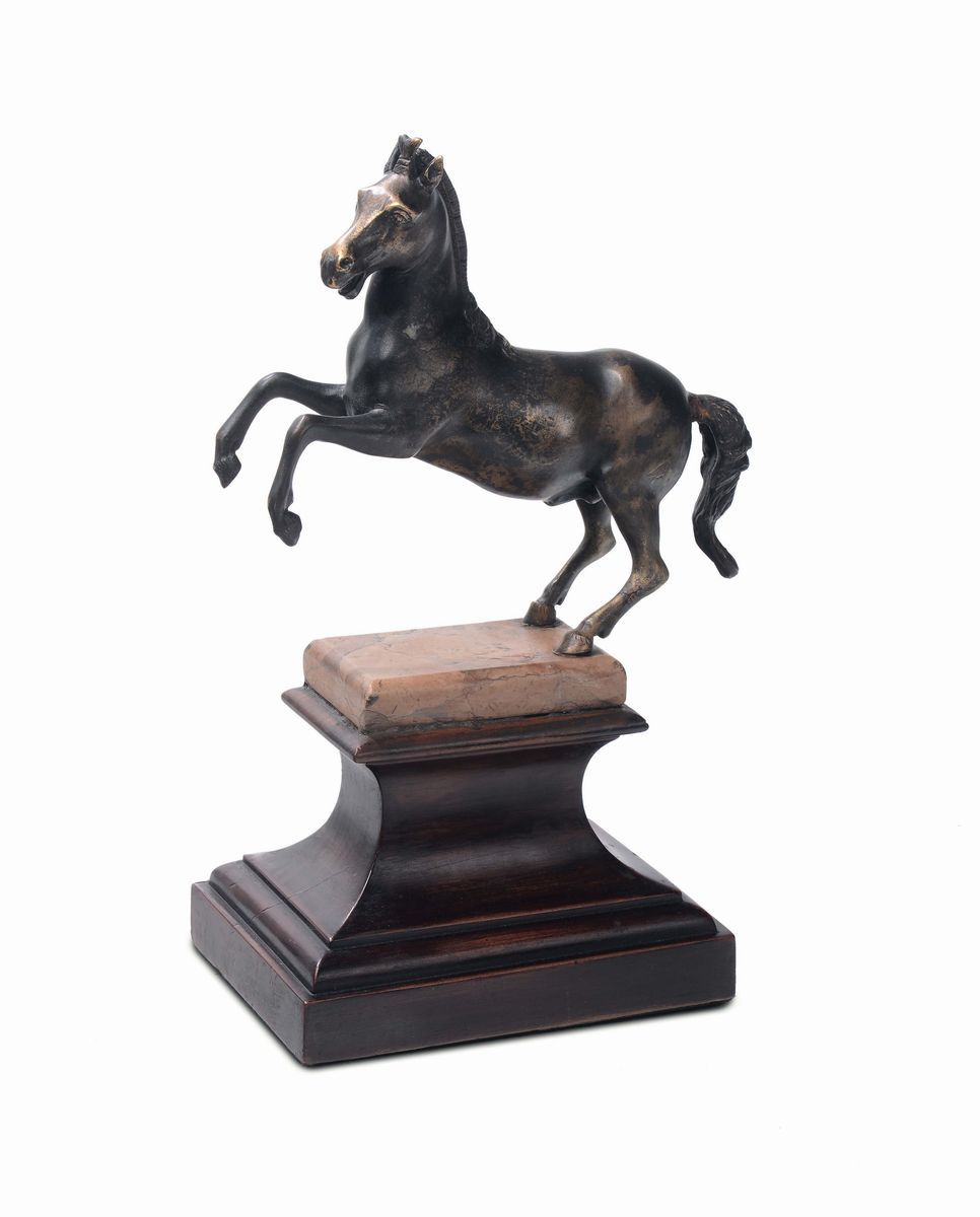 Cavallino rampante in bronzo fuso e cesellato, XIX secolo