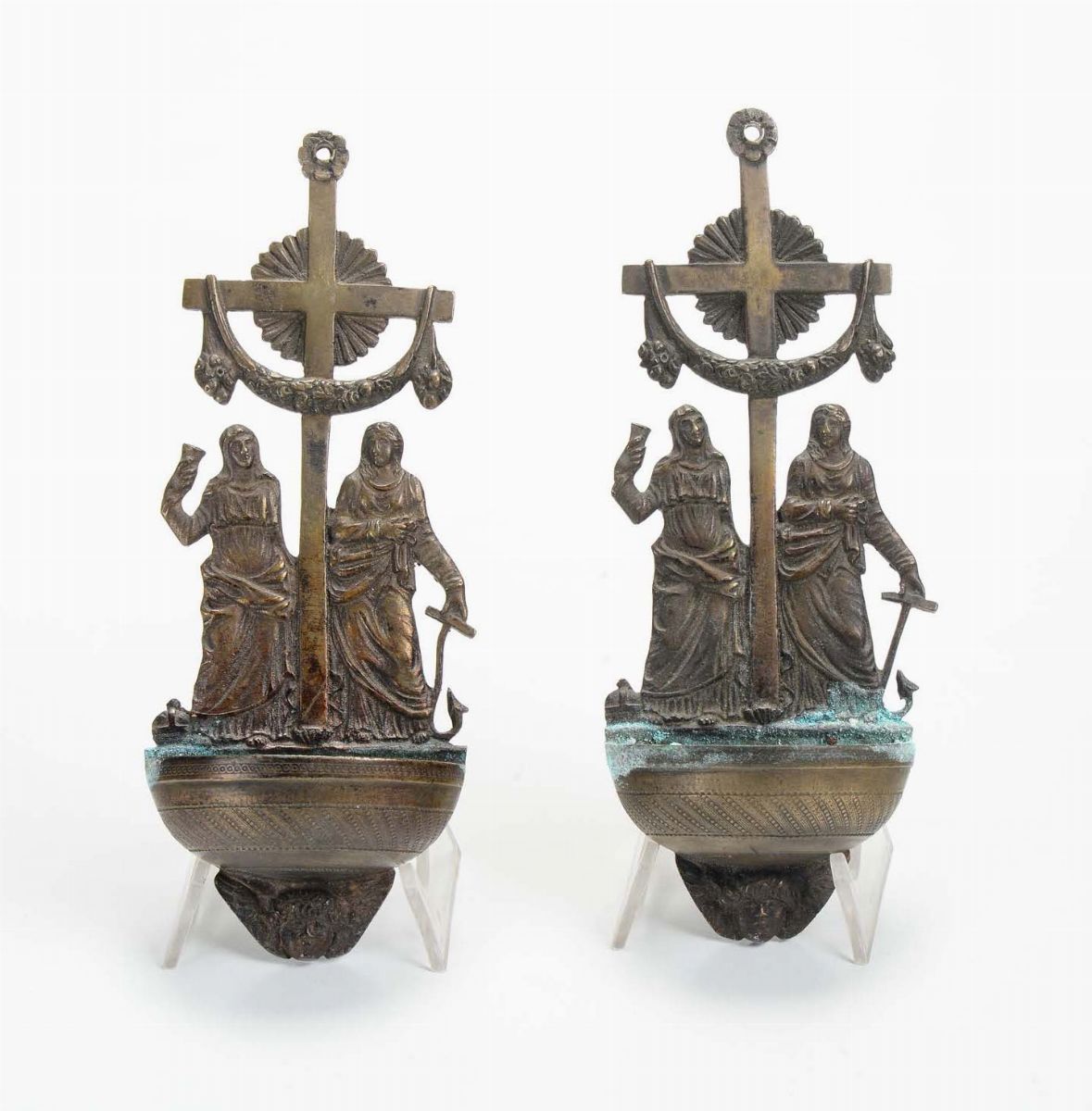 Coppia di acquasantiere in ottone/bronzo, fine XIX secolo