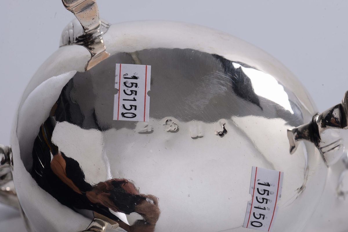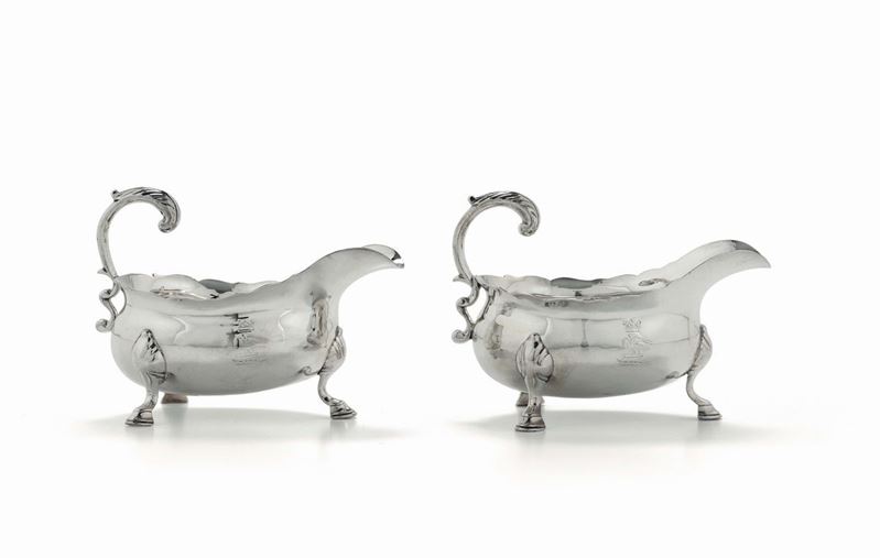 Coppia di salsiere in argento con stemma, Londra 1780