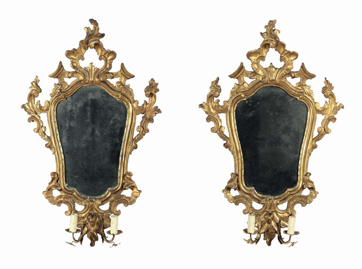 Coppia di ventole Luigi XV in legno dorato e scolpito, Venezia XVIII secolo