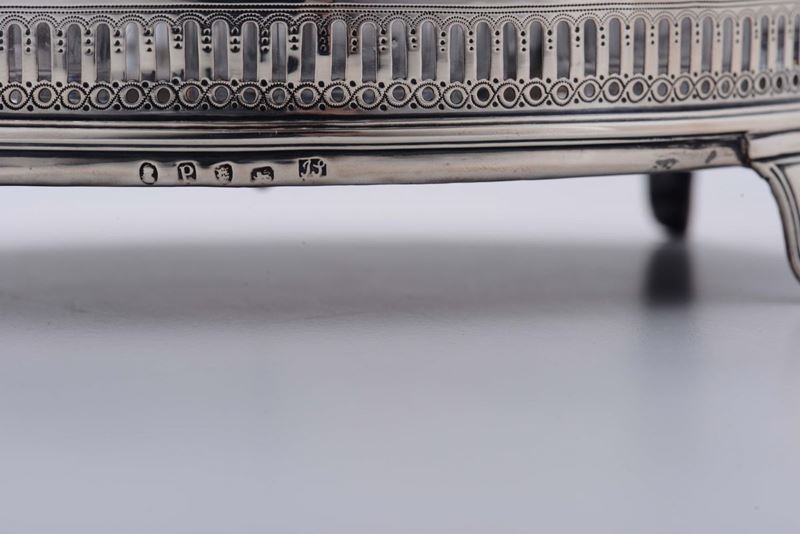 Cruet a sette bottiglie in cristallo e argento, Londra, 1816, Argentiere JS