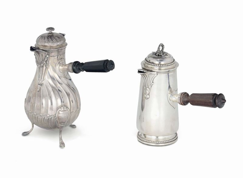 Due cioccolatiere in argento, Francia XIX-XX secolo