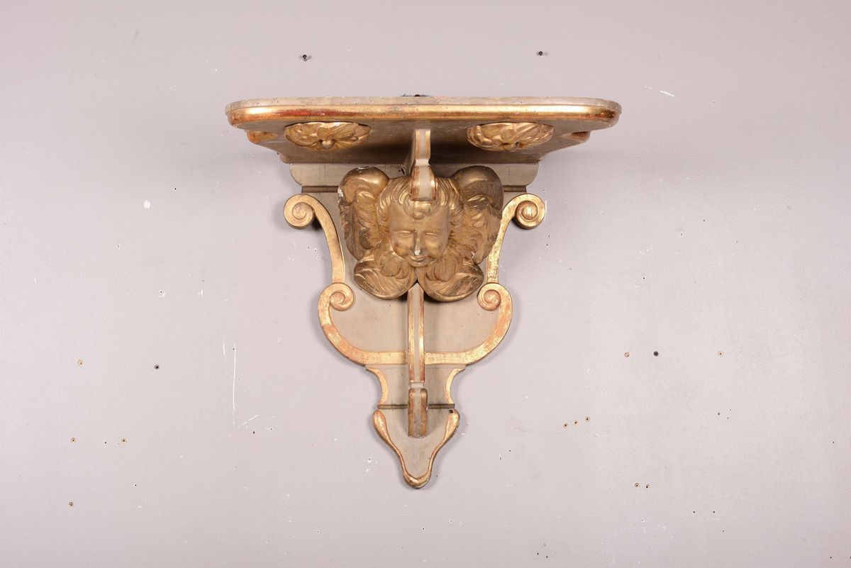 Grande mensola in legno laccato e dorato con testa di putto, XIX secolo