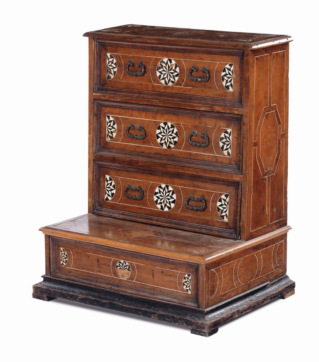 Inginocchiatoio lastronato e intarsiato in avorio, XIX secolo