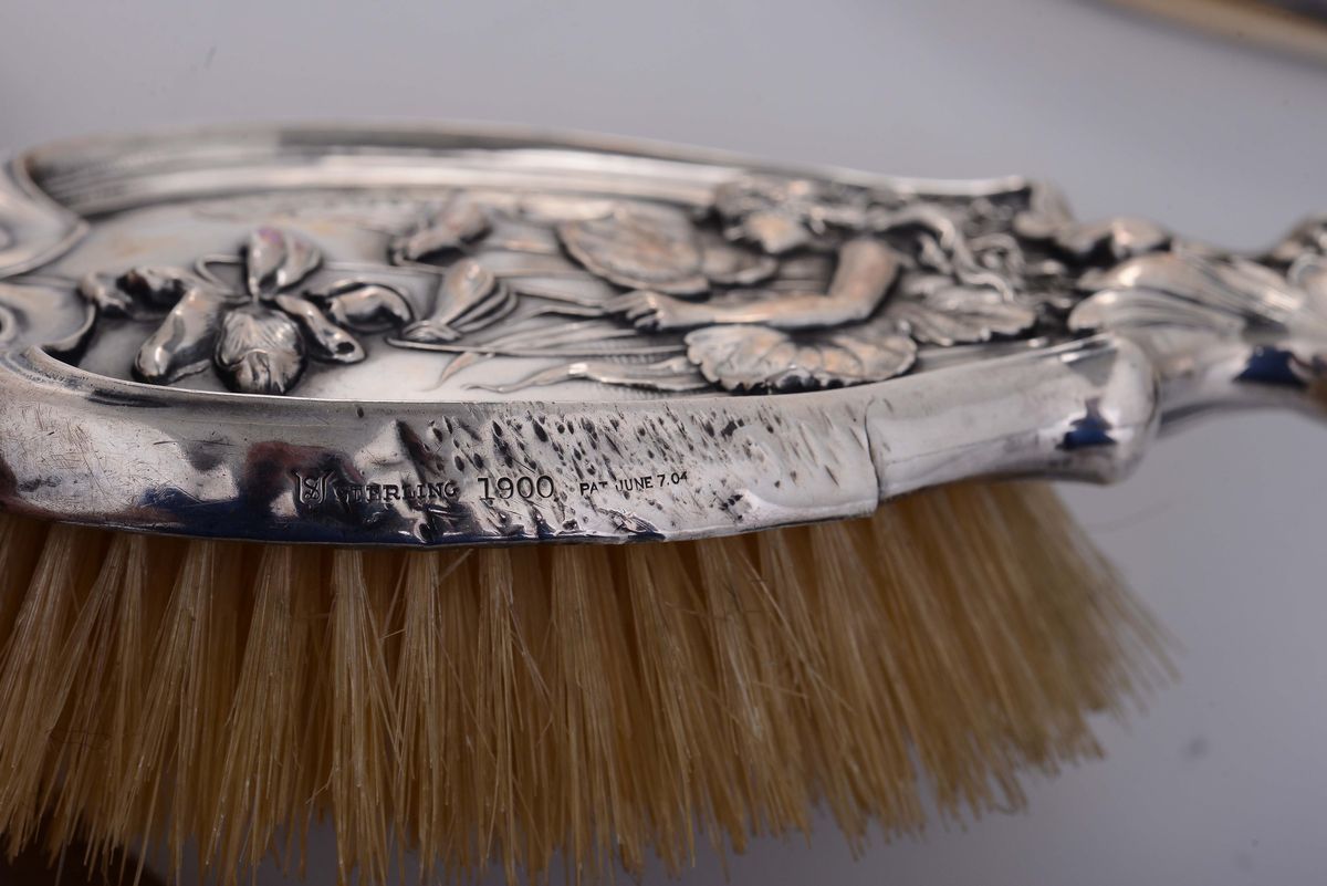 Insieme di tre specchi e spazzola Liberty in argento sterling, America, Inghilterra inizi XX secolo